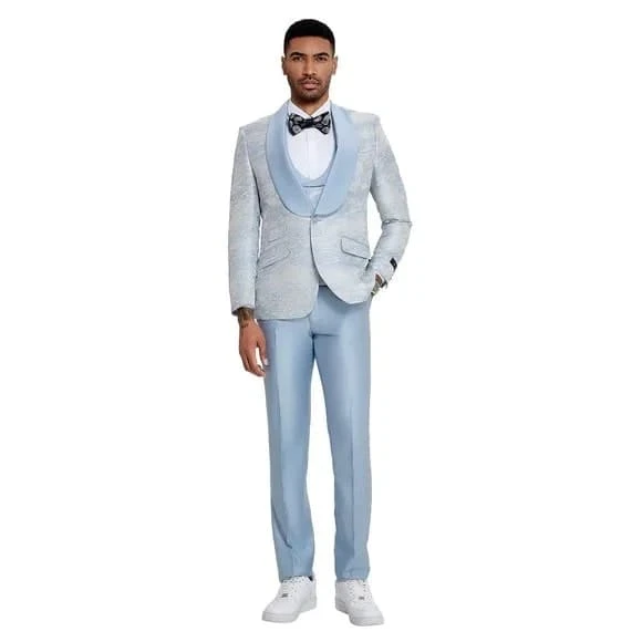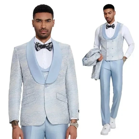 2025 Prom Special Blue Tuxedo Suit W/ Double-Breasted Vest By Tazzio