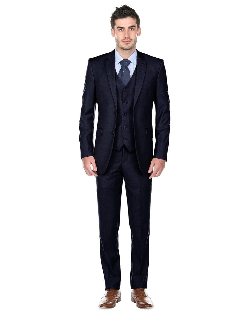 3 Piece Suit – Navy Blue Three Piece Suit – Mens Slim Fit Vested Suit Midnight Blue