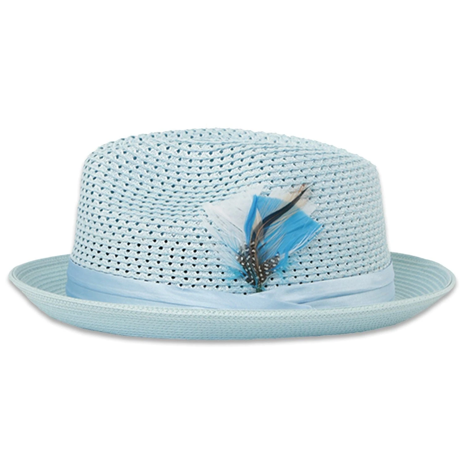 - Stylish fabric band around the crown