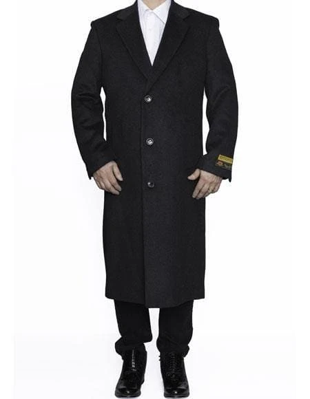 Single Breasted, Full Length Overcoat, Notch Lapel, 3 Button, Center Vent, Wool & Cashmere Blend,
