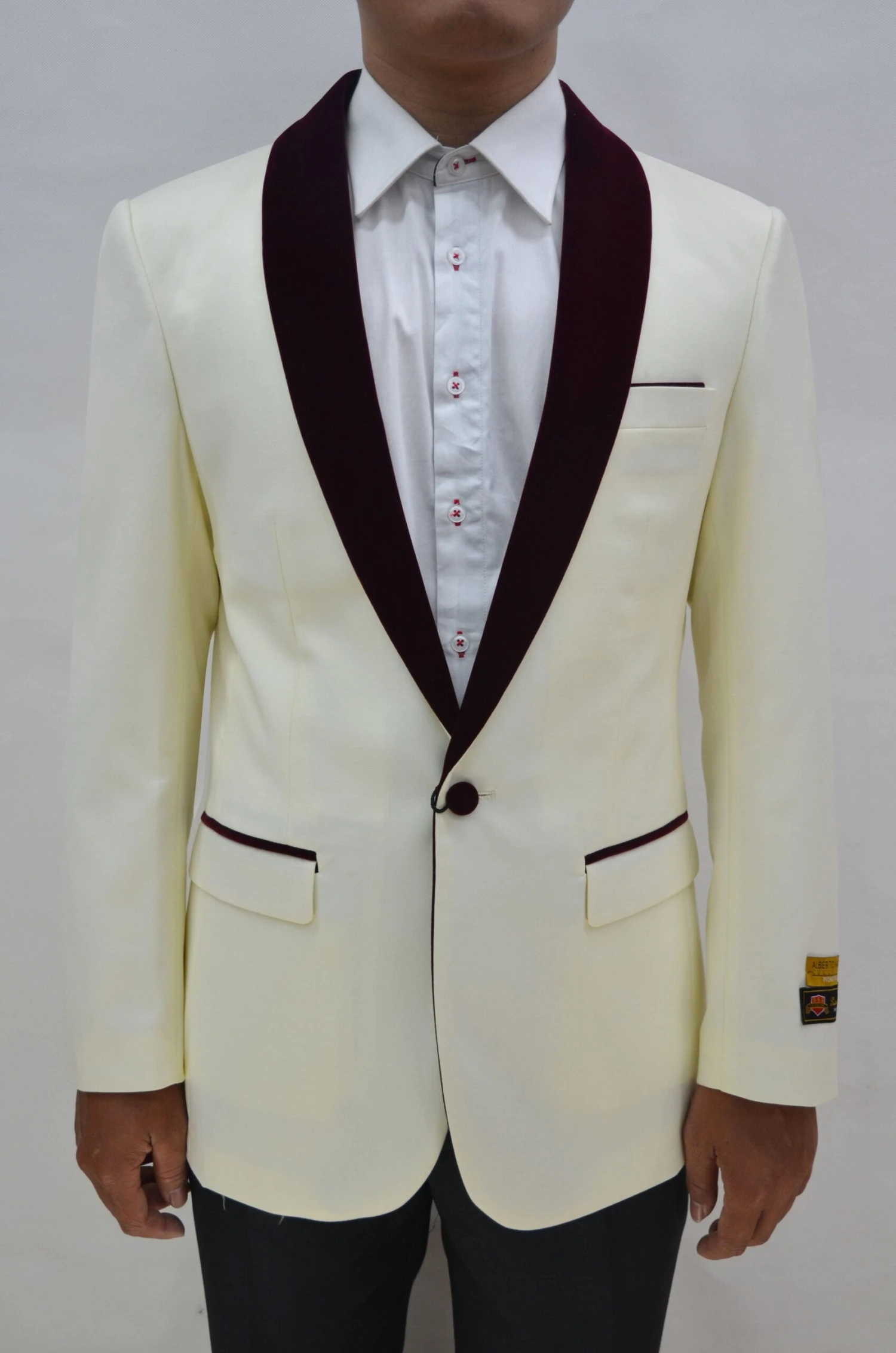 Dinner Jacket – Ivory/Burgundy – Mens Wholesale Blazers