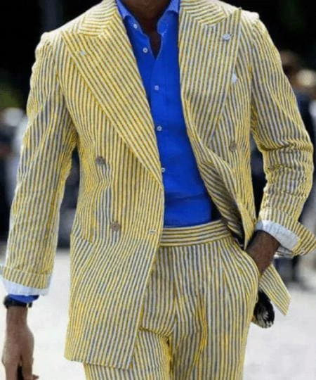Double Breasted Seersucker Suit – Yellow Suit – Summer Suit