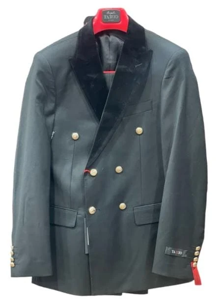 Men’s Alberto Nardoni Black Velvet ~ Velour Men’s Blazer Jacket Double Breasted Suit – Slim Fitted