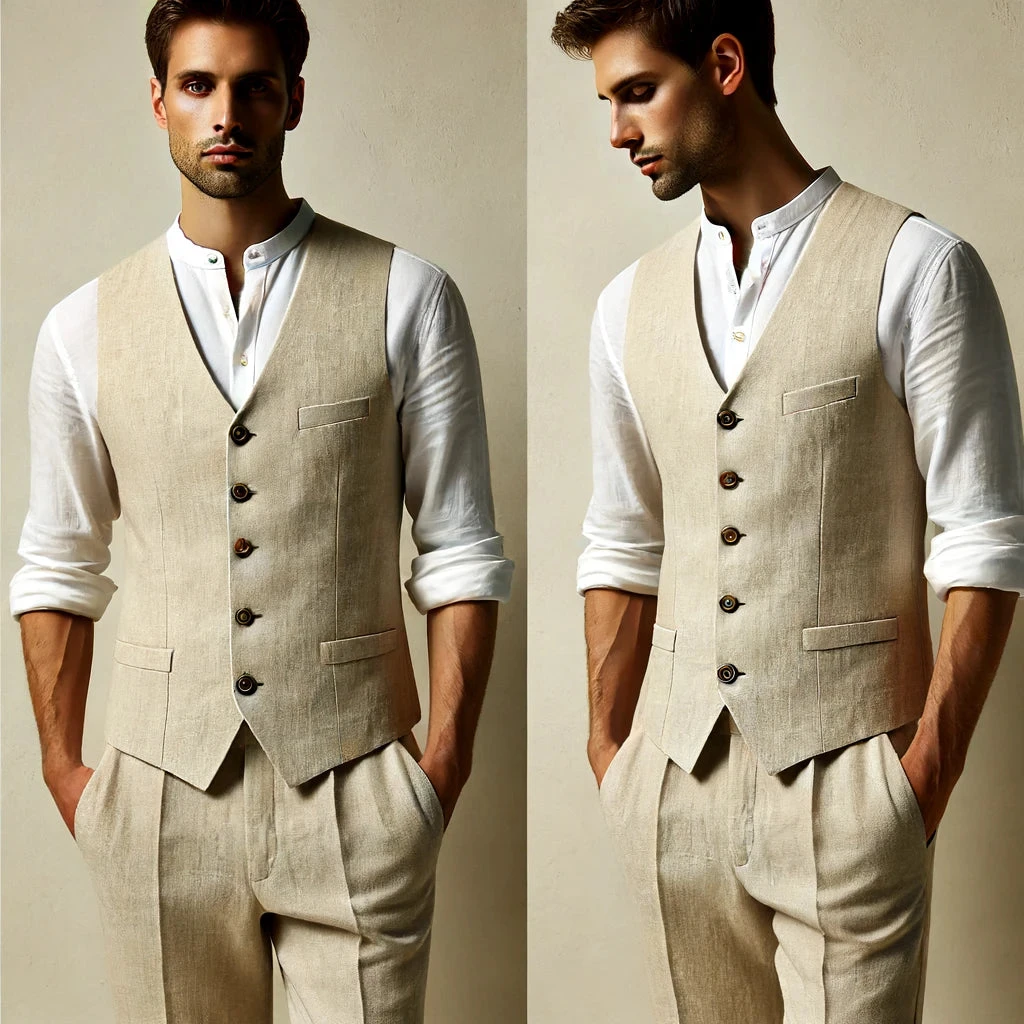 Five Button Besom Pocket Men’s Tan Chambray Slim Fit Suit Separates Vest