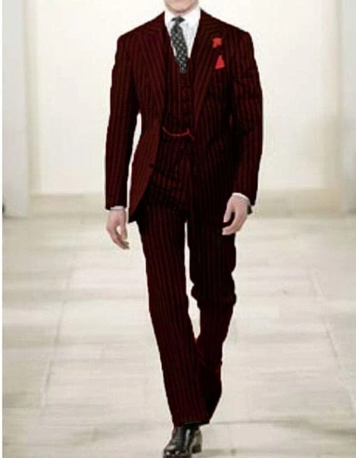 Gangster Suit – Mobster Suit – Mafia Suit For Mens 2 Button Gangster Pinstripe Suit In Black & Red