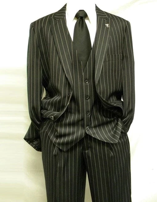 Gangster Suit – Mobster Suit – Mafia Suit For Mens 2 Button Gangster Pinstripe Suit In Black