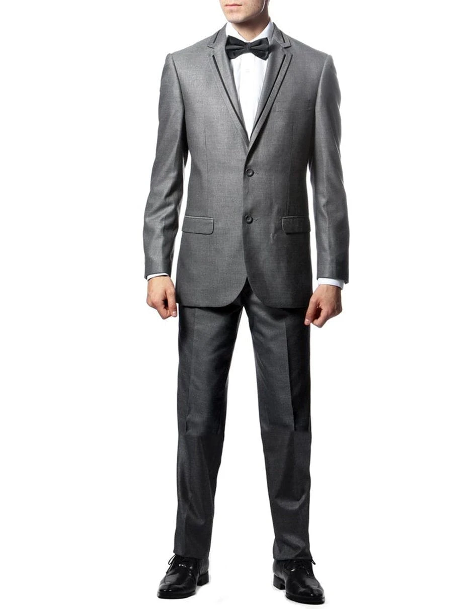 Grey Prom Suit – Gray Wedding Suit – Gray Tuxedo Grey & Black Trim Tuxedo