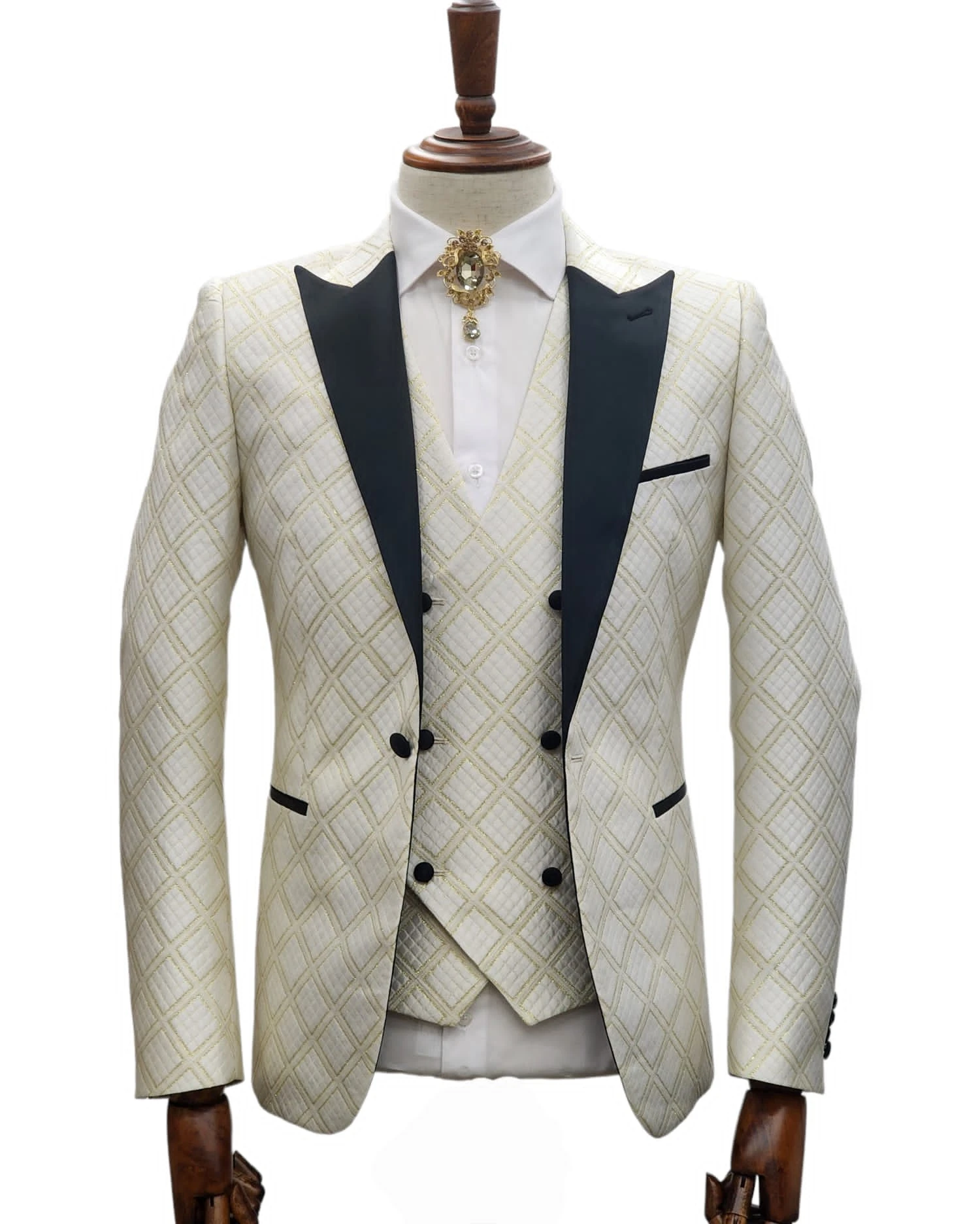 Ivory Tuxedo – Cream Wedding Suit- Off White Groom Peak LapelSuit