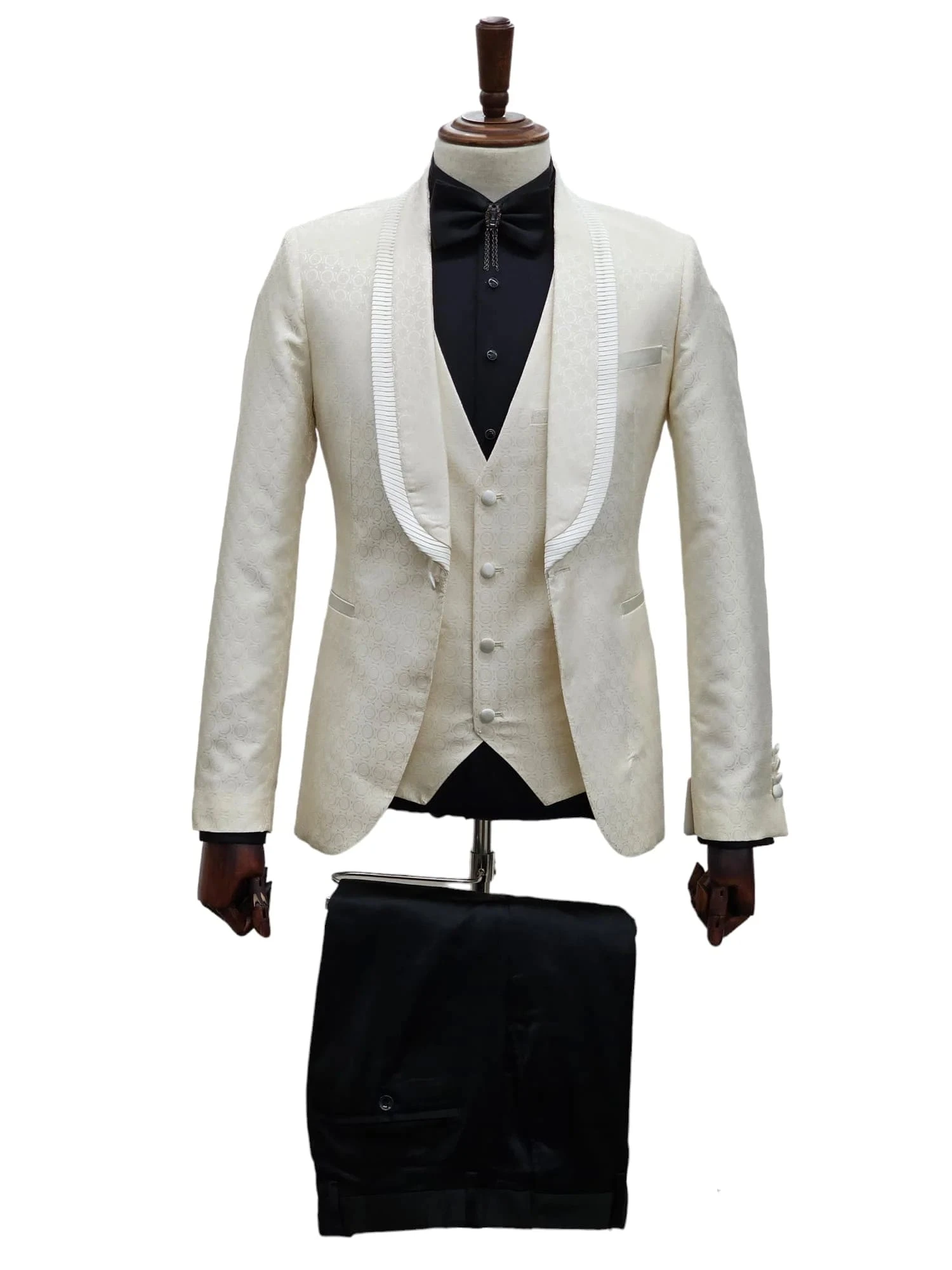 Ivory Tuxedo – Cream Wedding Suit- Off White Groom Shawl Lapel Suit