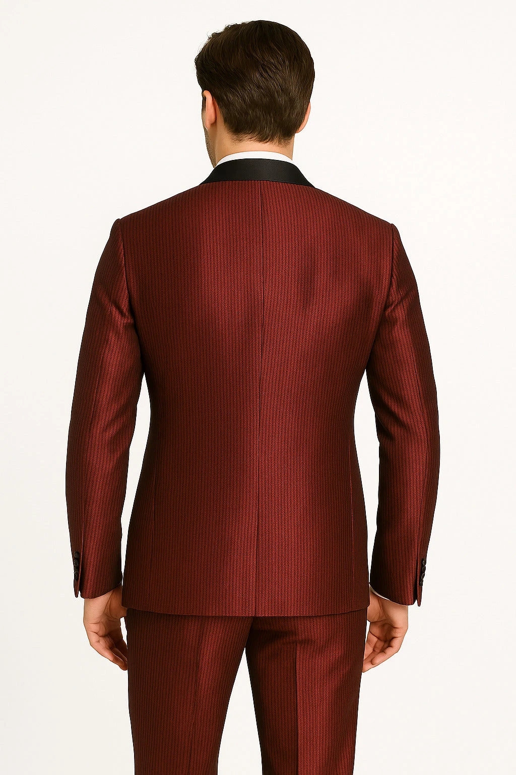 Step into the spotlight with this Men’s Burgundy Shiny Tuxedo, a bold and stylish ensemble that delivers high-end elegance with a contemporary twist. Featuring a shimmering burgundy fabric with subtle vertical texture, this tuxedo is designed to catch the light and attention at any event.