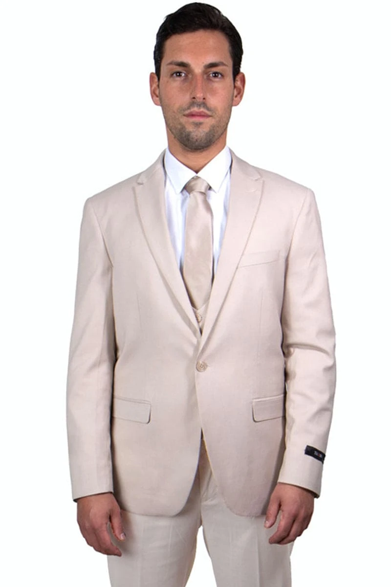 “Mens Stacy Adams Suit – Stacy Adams Suit Men’s Two-Button Vested Summer Suit – Light Tan”