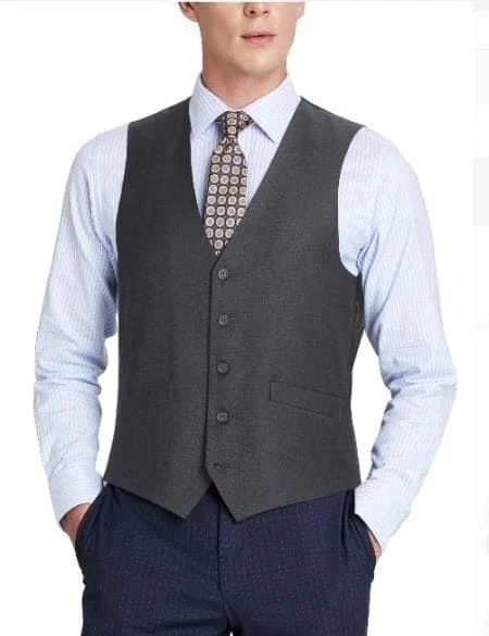 “Charcoal Grey Slim Fit Wedding Suit For Men – Two Button Basic Vested”