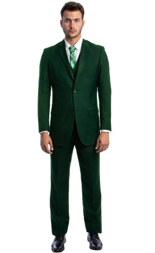 Men’s Vested Two Button Notch Lapel Solid Color Wedding And Business Suit In Hunter Green