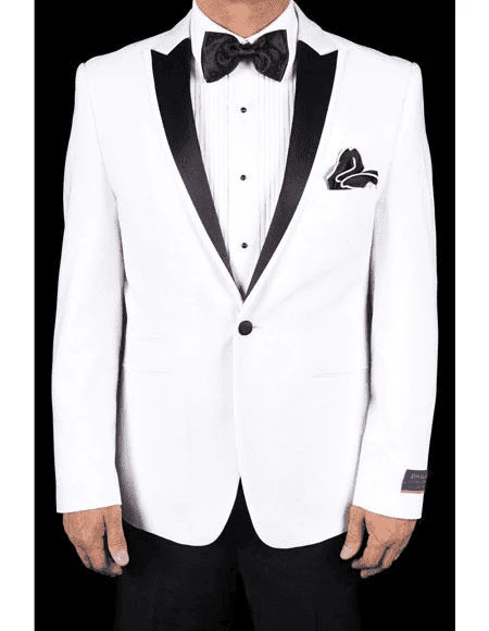 Be the first to review “Men’s White Super 150’S Viscose Blend 1 Button Tuxedo Solid Pattern Slim Fit Dinner Jacket” Cancel reply