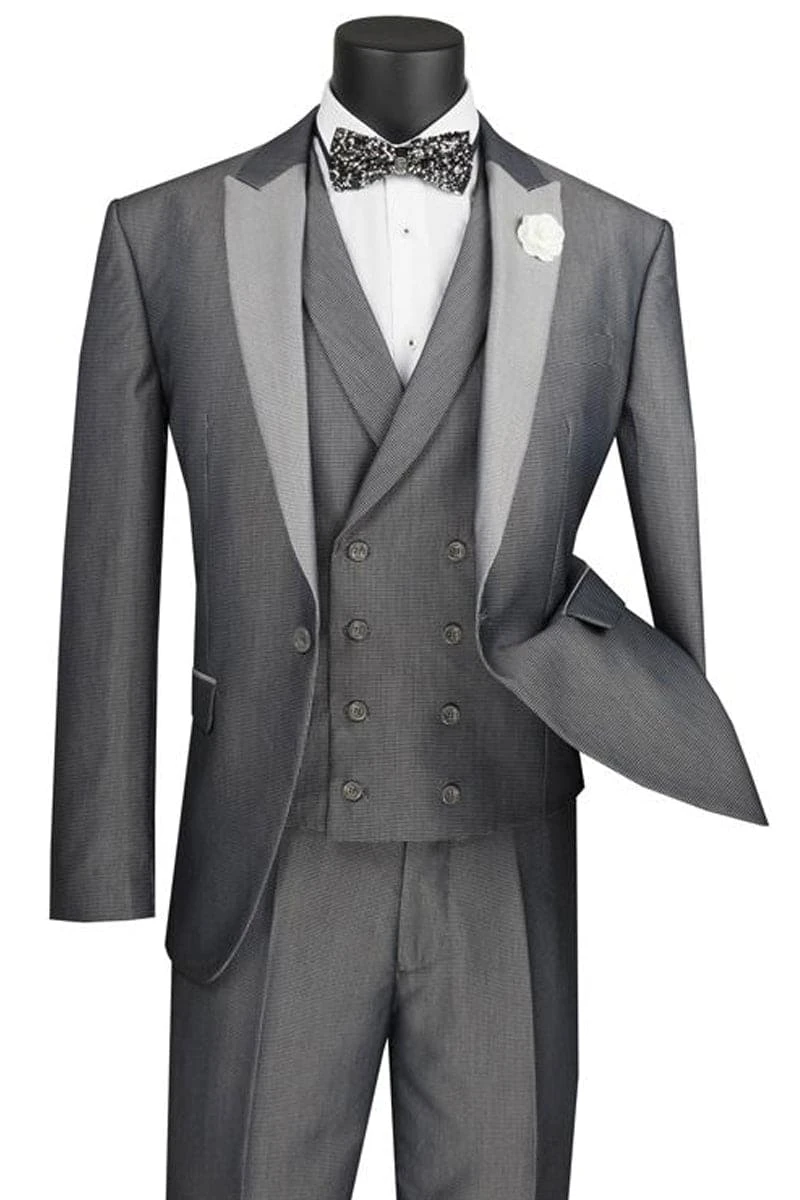Mens 1 Button Contrast Peak Lapel Double Breasted Vest Tuxedo Suit In Silver