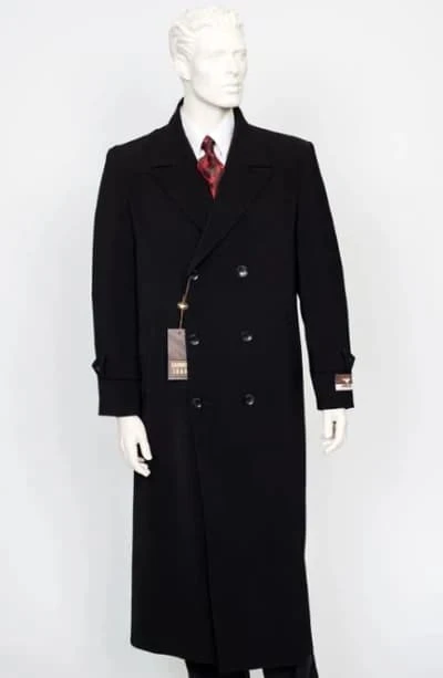 Mens Black Overcoat – Black Double Breasted Overcoat – Full Length Black Topcoat In Australian Wool Fabric In 7 Colors