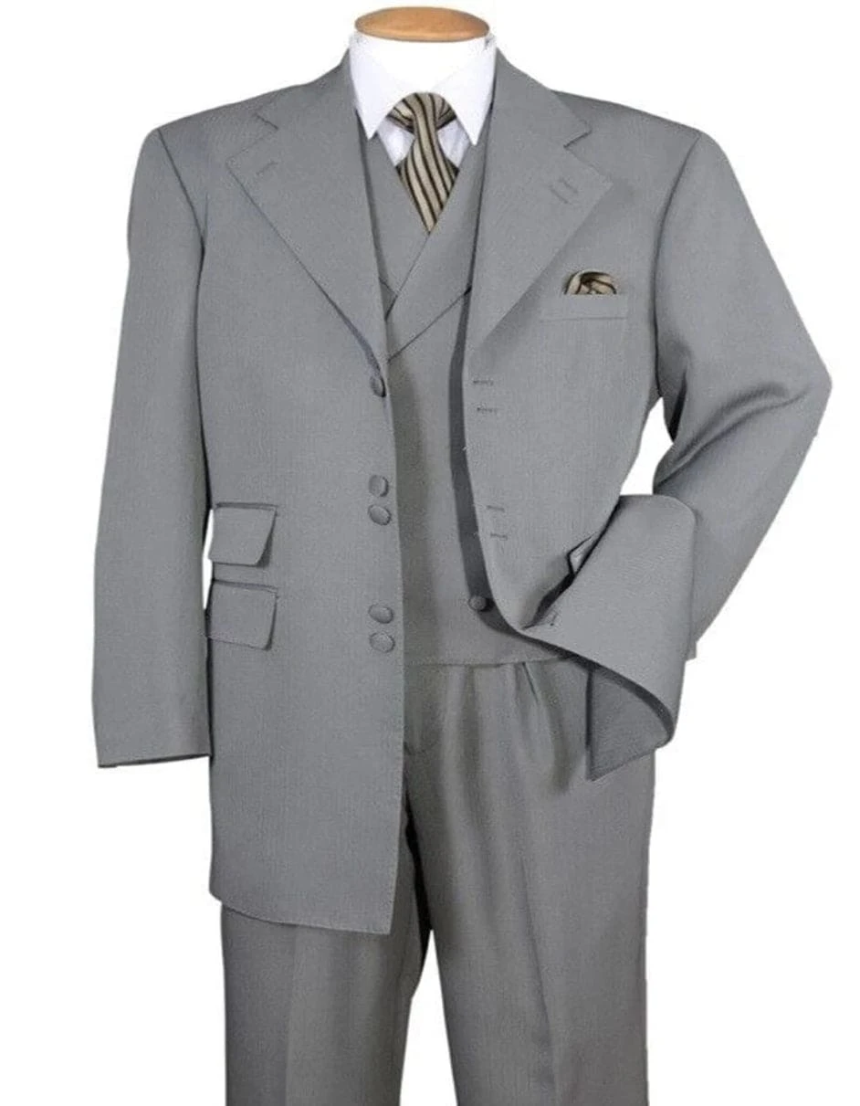 Mens Double Button Vested Fashion Zoot Grey Suit