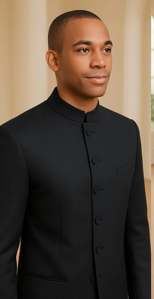Mens Long Mandarin Collar Zoot Suit Black Tuxedo