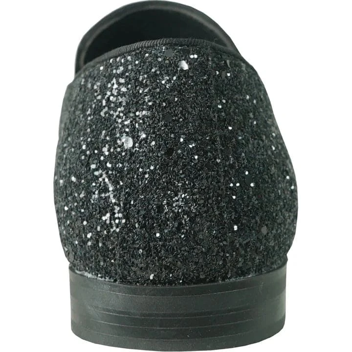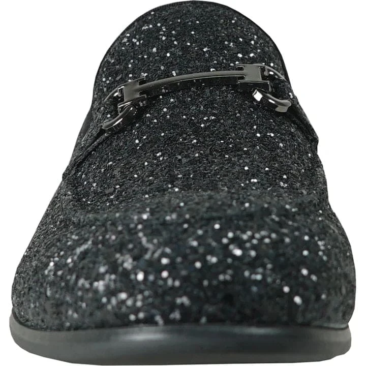 Mens Modern Glitter Sequin Prom Tuxedo Buckle Loafer In Black