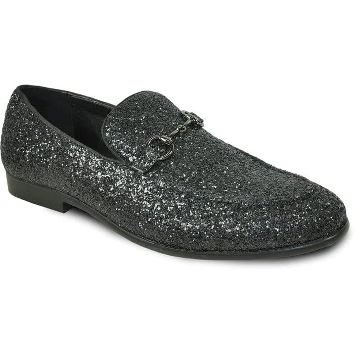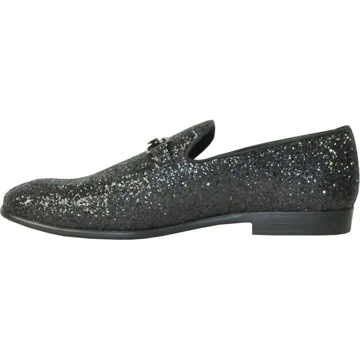 Mens Modern Glitter Sequin Prom Tuxedo Loafer In Black