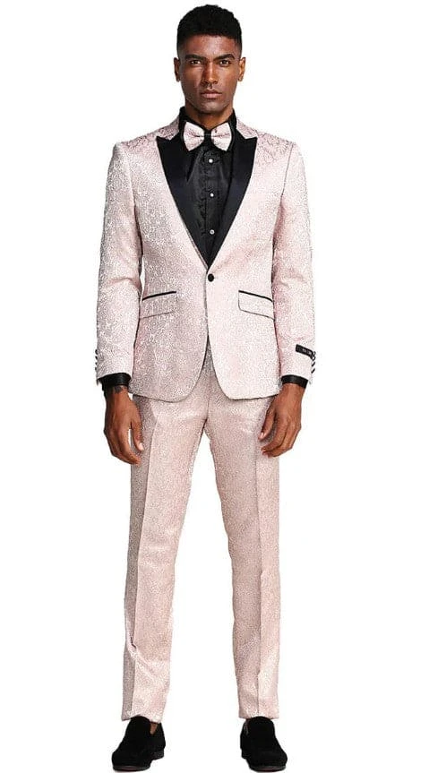 Mens One Button Slim Fit Paisley Blush Pink Wedding And Prom Tuxedo