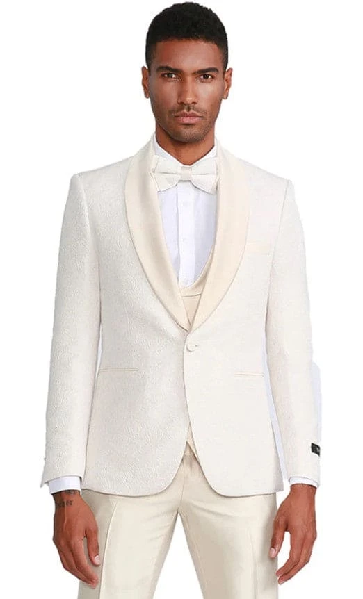 Mens One Button Vested Paisley Prom And Wedding Tuxedo In Ivory