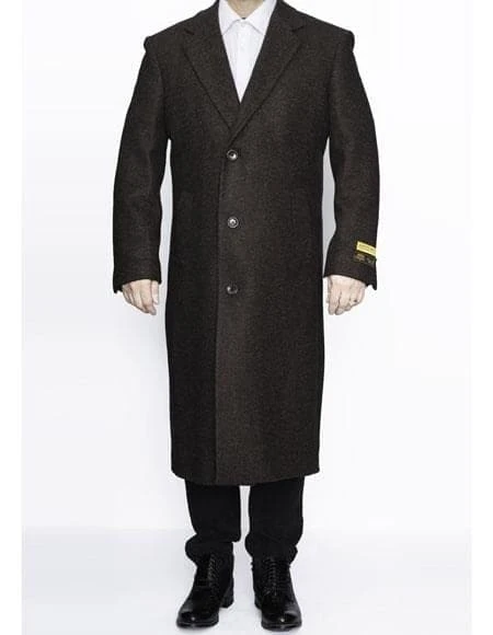 Mens Overcoat -Mens Long Wool Topcoats- Topcoat For Men-Men’s Dress Coat Full Length Wool Dress Top Coat / Overcoat In Brown Winter Men’s Topcoat Sale