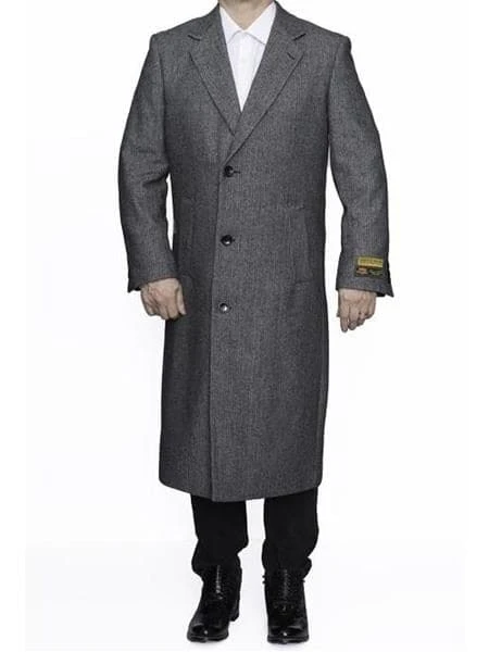 Mens Overcoat -Mens Long Wool Topcoats- Topcoat For Men-Men’s Dress Coat Three Button Full Length Herringbone Gray Overcoat ~ Long Men’s Dress Topcoat – Winter Coat
