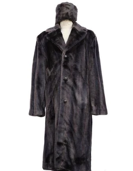 Mens Overcoat -Mens Long Wool Topcoats- Topcoat For Men-Men’s Long Length Faux Fur Coat Full Length Overcoat ~ Long Men’s Dress Topcoat – Winter Coat+ Matching Hat Brown