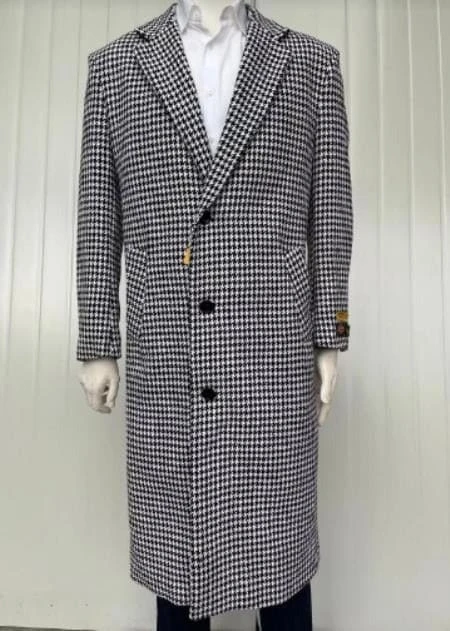 Mens Overcoat – Mens Long Wool Topcoats – Topcoat For Men-Mens Full Length And Cashmere Overcoat – Winter Topcoats – Black And White Coat