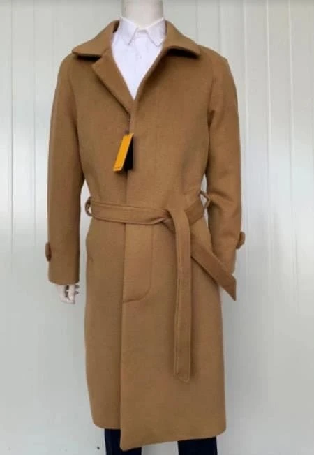 Mens Overcoat -Mens Long Wool Topcoats- Topcoat For Men-Mens Full Length And Cashmere Overcoat – Winter Topcoats – Vicuna Light Brown – Dark Camel