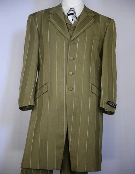 Mens Pimp Coat + Pimp Jacket Vest And Pants – Gangster Olive Green Suit