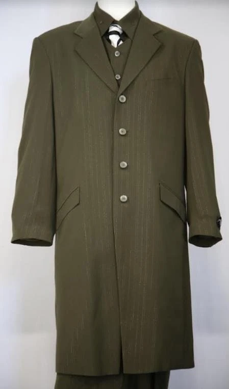 Mens Pimp Coat + Pimp Jacket Vest And Pants – Gangster Stripe Single Breasted Fabric Suit