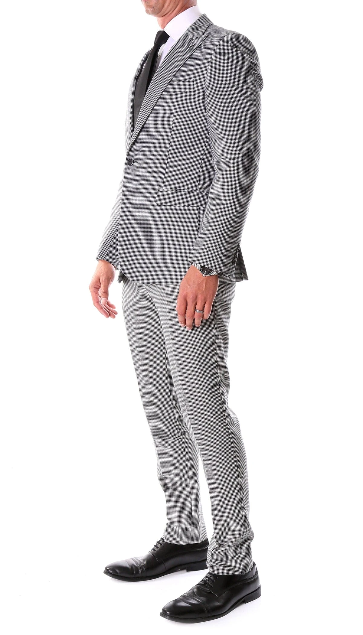 Mens Slim Fit Houndstooth Peak Lapel 2pc Suits