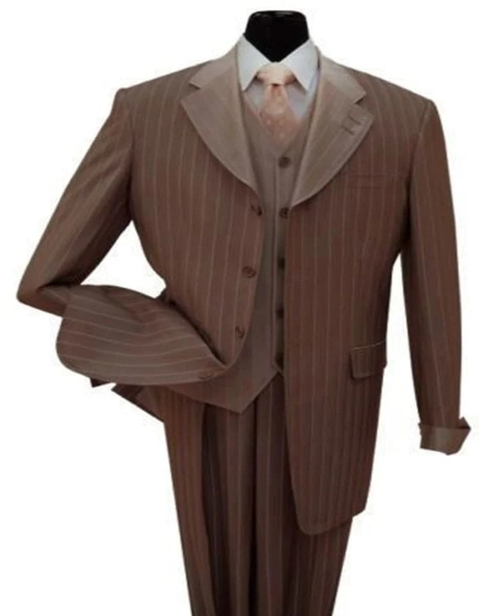 Mens Vested Shiny Sharkskin Pinstripe Fashion Zoot Brown Suit