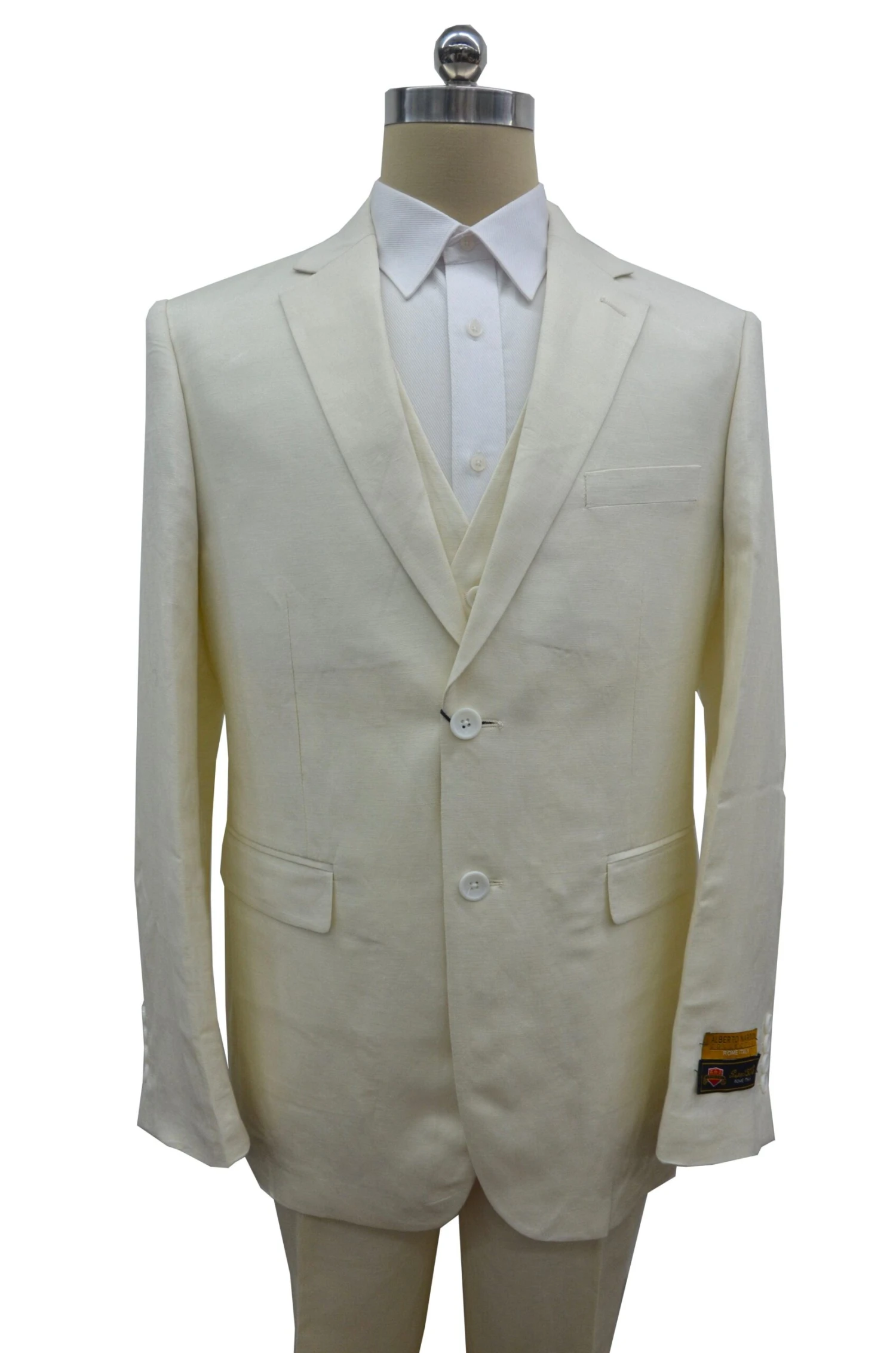 2 Button, Notch Lapel, Modern Fit, Matching Vest Included, Side Vented, Linen Fabric.