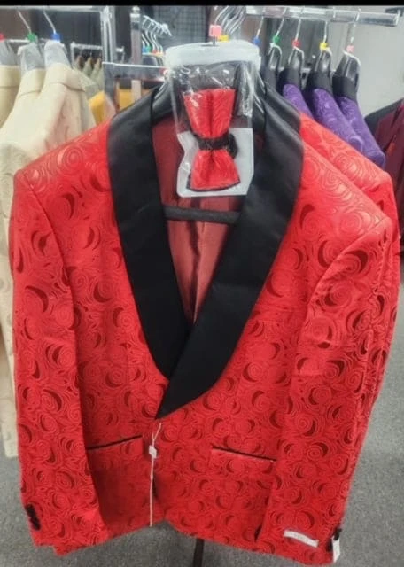 Paisley Tuxedo Dinner Jacket – Red Mens Blazer + Bowtie – Prom Jackets