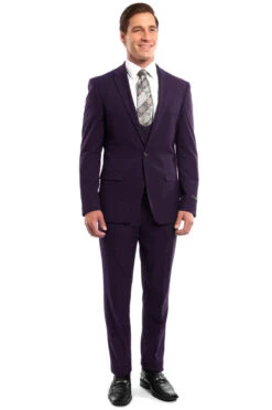 “Eggplant Men’s Wedding & Prom 2025 Suit – One Button, Peak Lapel, Skinny Fit With Lowcut Vest”