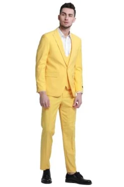“Yellow Men’s Slim Fit Wedding Suit – Peak Lapel Double Breasted Vest”