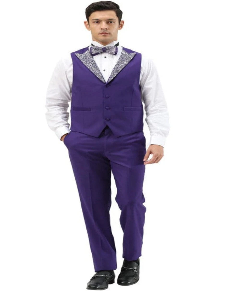 Purple And Silver Prom Tuxedo – Perfect Wedding Suit Vested Rhinestone Lapelled