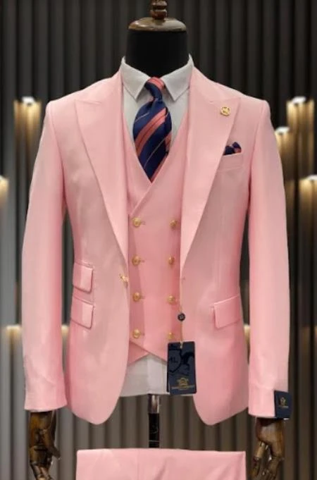Turn heads with the Rossiman Men’s Pink Suit in a bold hue.