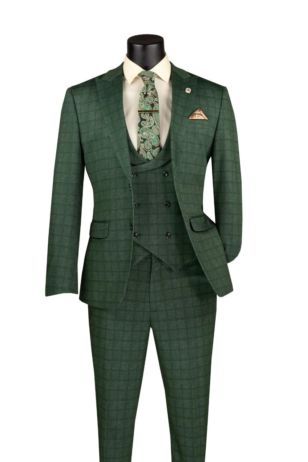 Slim Fit 3 Piece Stretch Fabric Suit In Green