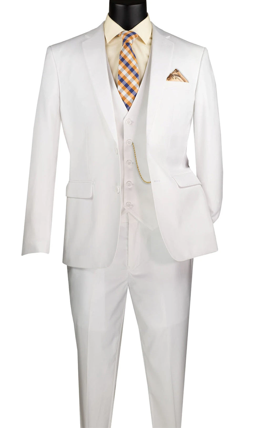 Slim Fit Men’s Suit 3 Piece 2 Button In White