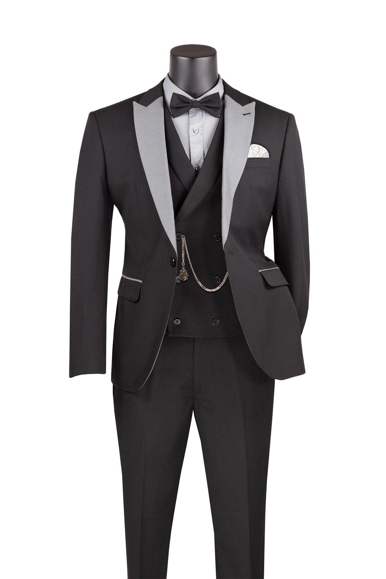 Slim Fit Tuxedo 3 Piece With Matching Bow Tie In Black