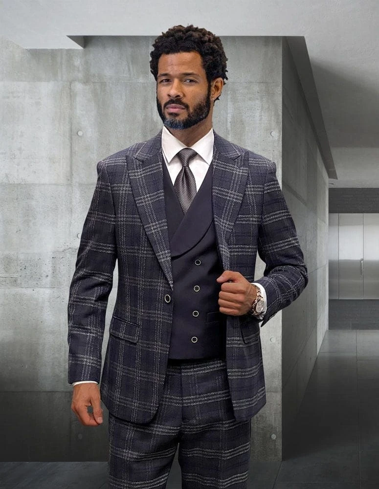 Statement ITALY Suit – Super 150’s Wool Suit Statement Men’s 3 Piece 100% Wool Fashion Suit – Plaid Pattern