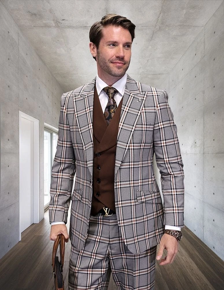 Statement ITALY Suit – Super 150’s Wool Suit Statement Men’s 3 Piece Modern Fit 100% Wool Suit – Sharp Plaid
