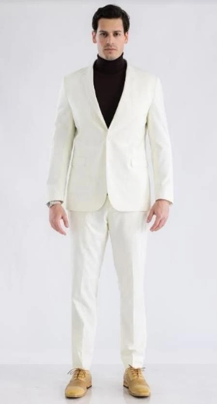 Suit And Turtleneck Combo – Turtleneck Prom Outfits – Prom Turtleneck Ivory Suit