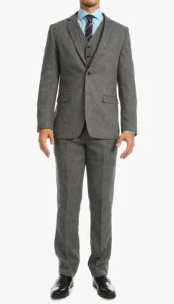 Steve Harvey Suit – Peak Lapel Modern Fit – No Pleated Pants Designer Brand Red 3 Piece Vested Suit