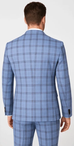 Rossi Man MAX RM1822 Slim Fit 3-Piece Suit – Premium Light Blue & Brown Plaid Formal Suit For Men