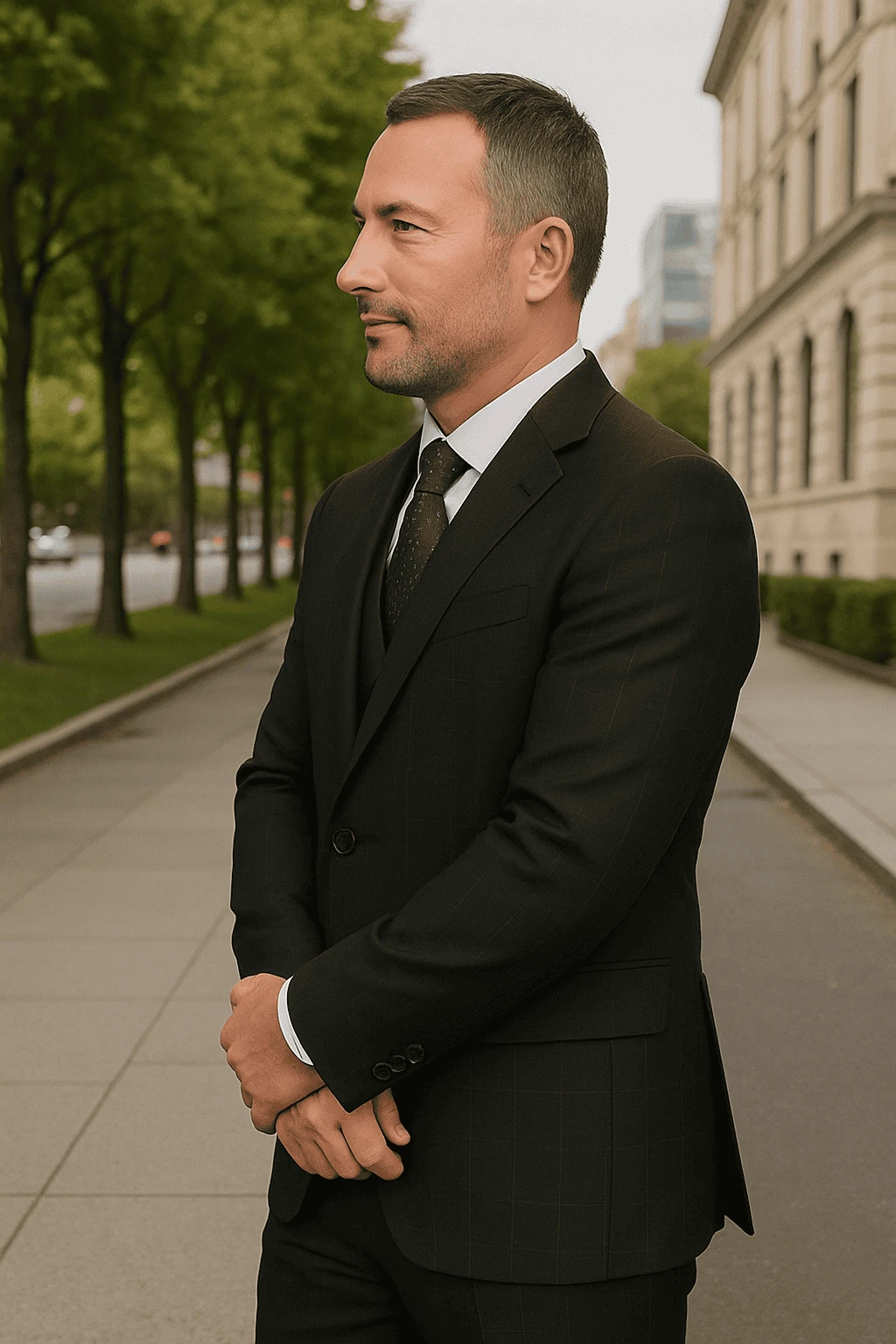 Wool Suit – Italian Made Business Suit by Statement Men’s 3 Piece 100% Wool Modern Fit Suit – Solid Scoop Vest